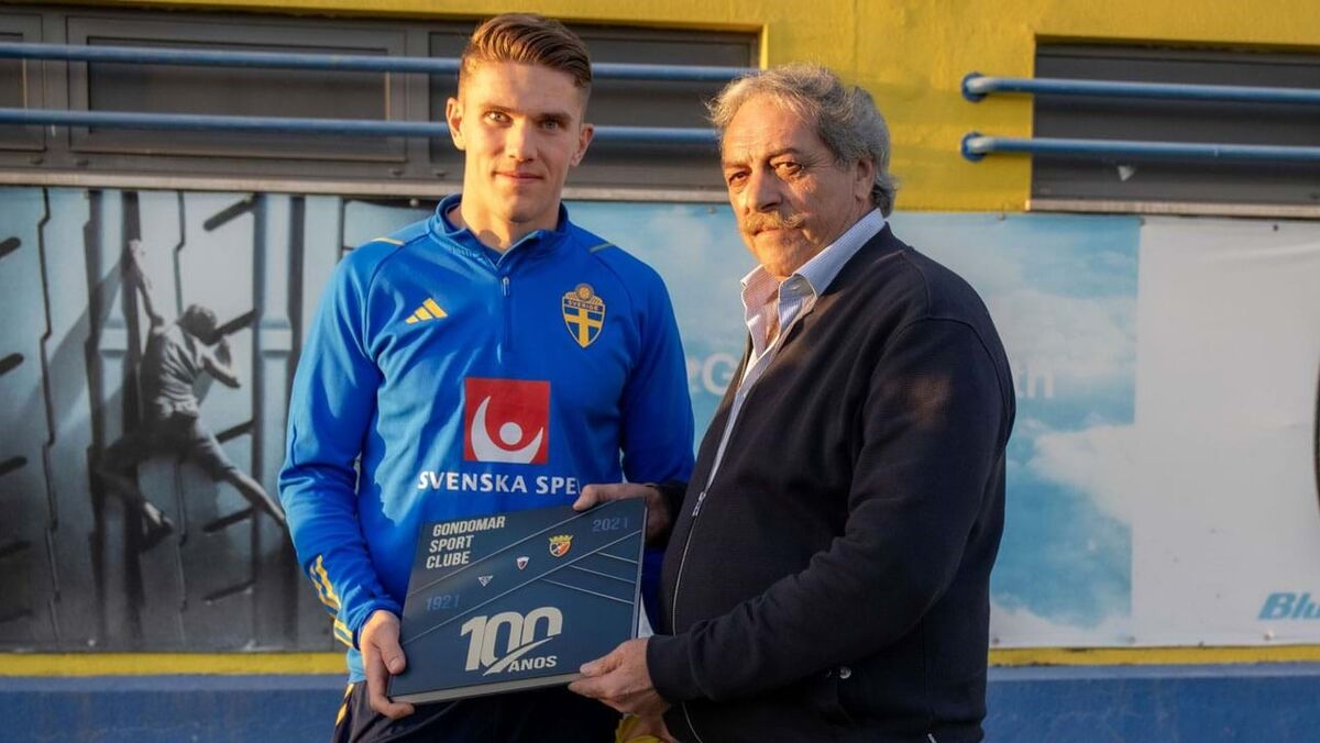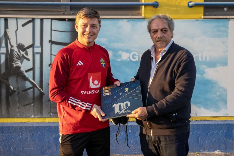 Presidente do Gondomar confraternizou com Gyökeres e ainda ofereceu duas 'prendas' ao selecionador sueco