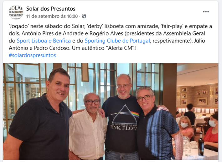 Presidentes das MAG de Benfica e Sporting juntos ao almoço
