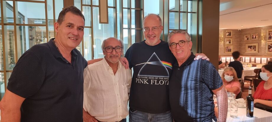 Os presidentes da mesa da assembleia geral de Benfica e Sporting, António Pires de Andrade e Rogério Alves, ao centro, tiveram ontem um almoço informal no restaurante ‘Solar dos Presuntos’, em Lisboa
