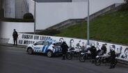 A cerca de uma hora do momento agendado para a realização do buzinão de protesto junto do Estádio da Luz, a PSP já se mobilizou para junto da Rotunda Cosme Damião. (Fotos: Pedro Ferreira)