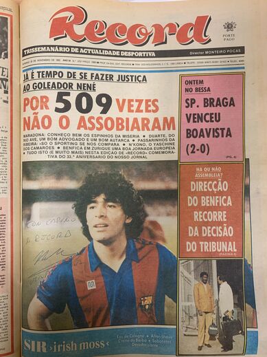 A 28 de novembro de 1982, Record publicou uma entrevista exclusiva a Diego Maradona depois de um dia a acompanhar El Pibe. O astro argentino morreu esta quarta-feira