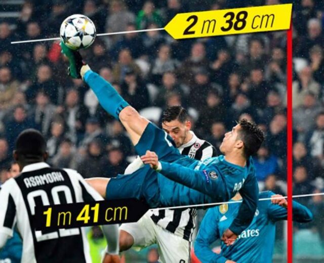 Quanto subiu Cristiano Ronaldo para marcar o golo de bicicleta? Uma barbaridade