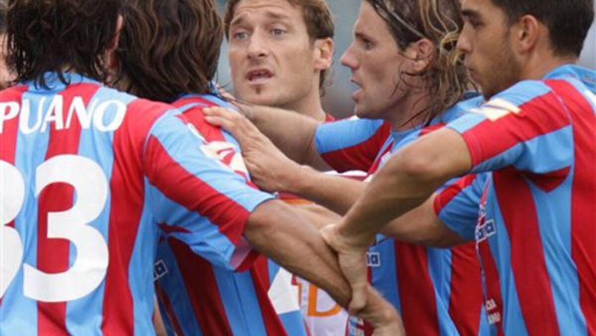 Catania, 27 setembro - Francesco Totti, eterno capitão da AS Roma, discute com uma série de jogadores do Catania. O veterano médio italiano não tem medo de ninguém…