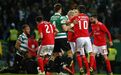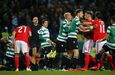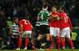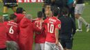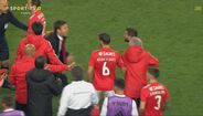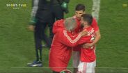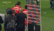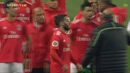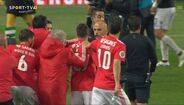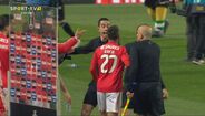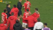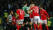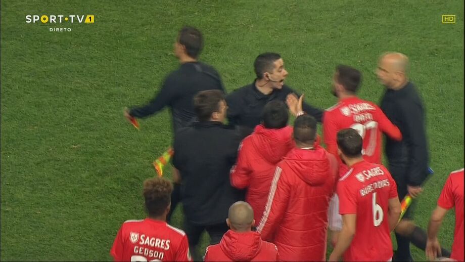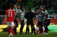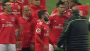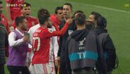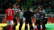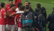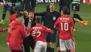 Visivelmente alterado, Rafa foi expulso no dérbi entre Sporting e Benfica já depois do apito final, alegadamente por protestos junto da equipa de arbitragem. O jogador das águias teve mesmo de ser segurado por vários colegas e dirigentes, isto num desentendimento que valeu também o cartão amarelo a Borja. Na sequência, também Acuña se exaltou. (Fotos: SportTV)