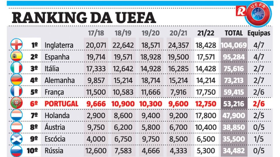 Ranking da UEFA: Atenções centradas naquilo que o Benfica possa fazer em Liverpool