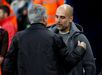 José Mourinho e Pep Guardiola não são propriamente amigos do peito (desde os tempos em que treinavam o Real Madrid e o Barcelona, respetivamente) pelo que havia grande expectativa em torno de mais um reencontro dos dois técnicos, esta tarde, no Estádio Etihad, recinto do Manchester City... (Fotos Reuters)