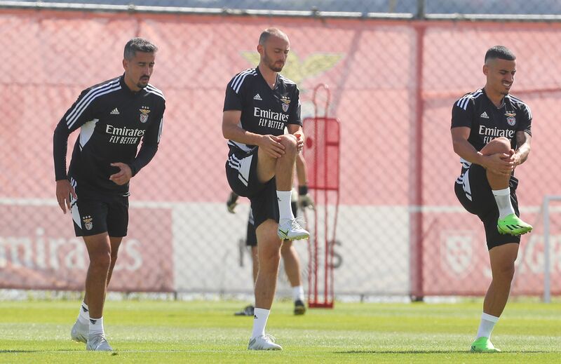 Reforços e muito foco: as imagens do último treino do Benfica antes do jogo com o Maccabi Haifa