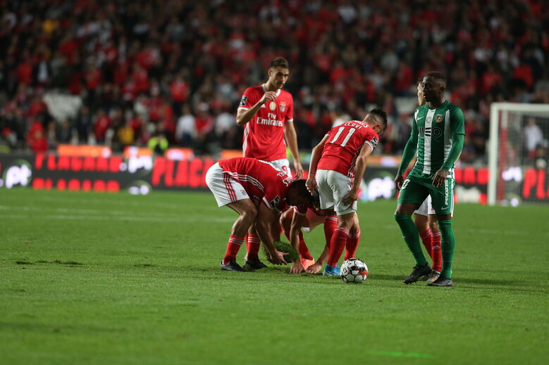 O relvado do Estádio da Luz vai ser substituído. Os trabalhos arrancarão após o jogo com o Santa Clara, marcado para 9 de novembro, aproveitando a paragem do campeonato, sendo o jogo desta tarde, frente ao Rio Ave, o último a disputar-se neste tapete [Fotos Luís Manuel Neves]