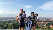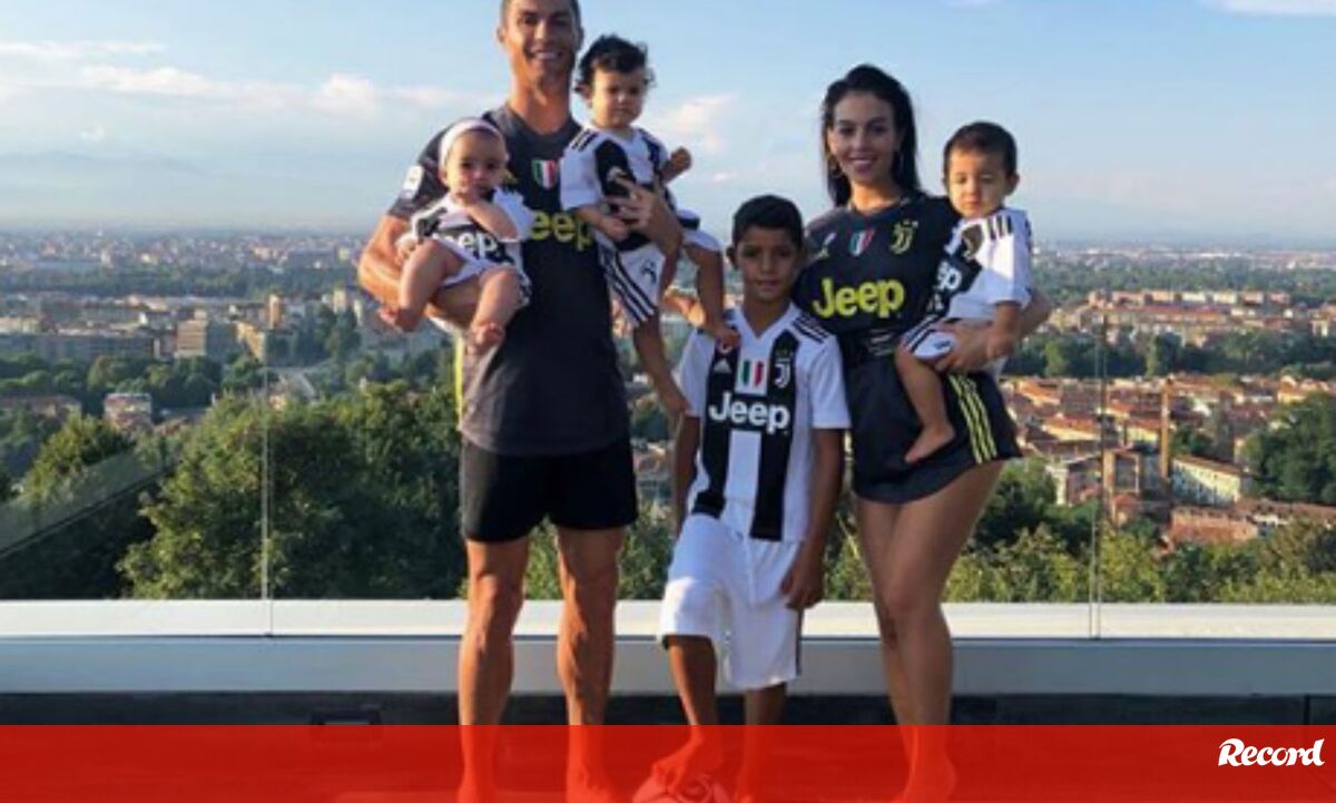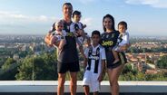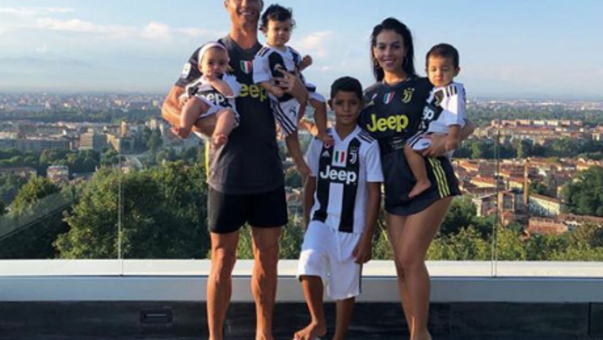 Ronaldo, Georgina Rodríguez, Cristianinho, Mateo, Eva e Alana Martina: imagem de uma família feliz, totalmente equipada à Juventus.