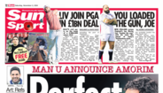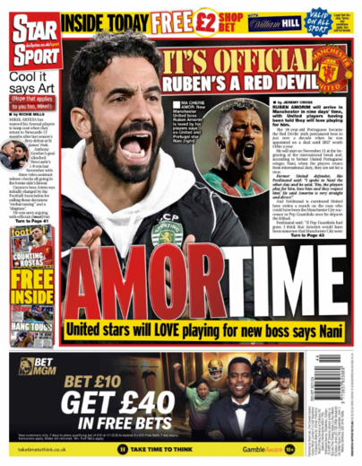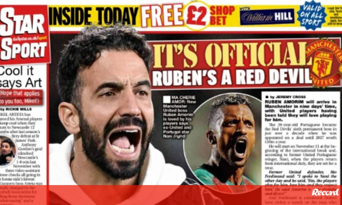 A oficialização por parte do Manchester United e as palavras de Rúben Amorim depois do jogo com o Estrela da Amadora merecem este sábado grande destaque na imprensa inglesa.