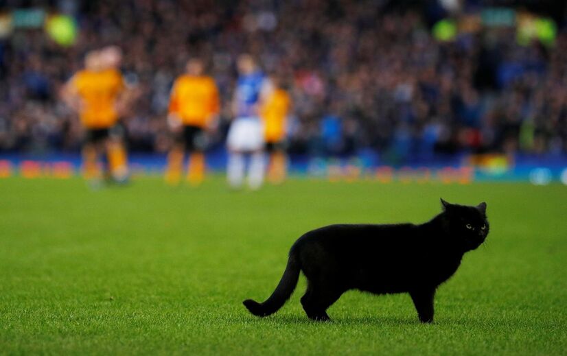O Everton recebeu e perdeu frente ao Wolverhampton (1-3) este sábado num duelo em português. Ao minuto 67', houve um protagonista de quatro patas a assumir o 'comando': um gato preto que interrompeu o jogo e gerou todo o tipo de reações... [Fotos Reuters]