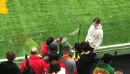 Rui Costa foi figura no jogo de lendas esta sexta-feira realizado diante da Espanha (derrota por 7-4), ao marcar um dos quatro golos de Portugal, mas também reuniu as atenções após o apito final. O atual presidente do Benfica foi bastante solicitado por adeptos para tirar fotos e distribuir vários autógrafos, dois deles em camisolas que bem conhece: do AC Milan e da Fiorentina.