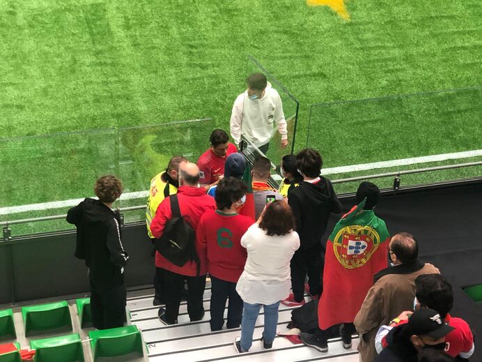 Selfies e autógrafos: Rui Costa bastante solicitado no final do jogo de lendas