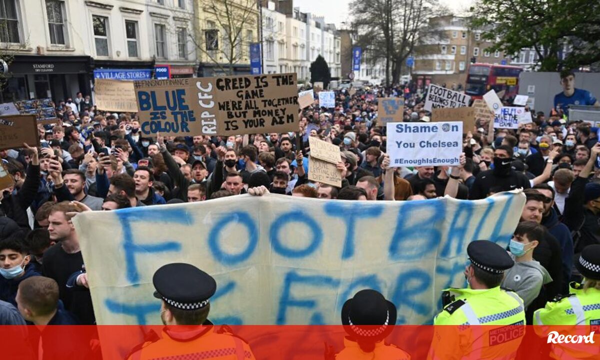 Centenas de adeptos do Chelsea deslocaram-se às imediações do estádio Stamford Bridge numa ação de protesto contra a integração do clube londrino na Superliga Europeia. Entre tochas, cânticos e mensagens, Petr Cech, atual dirigente dos blues, teve de intervir para acalmar os ânimos. Note-se que a imprensa inglesa está a avançar que o Chelsea estará de saída da Superliga Europeia... antes da prova sequer arrancar. [Imagens: Lusa/EPA e Reuters]