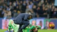 Após o apito final do FC Porto-Roma (3-1), Robin Olsen estendeu-se em pleno relvado, numa imagem de claro desconsolo à qual Sérgio Conceição não ficou indiferente. O técnico do FC Porto aproximou-se do guardião da Roma, acarinhou-o e ergueu-o do chão, dando-lhe, de seguida, um sentido abraço.