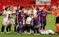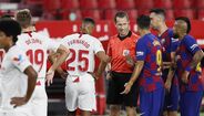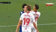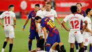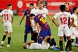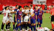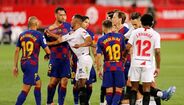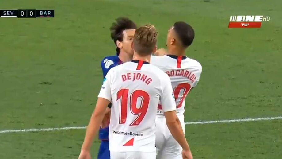A fechar a primeira parte do Sevilha-Barcelona (0-0) - resultado que deixa o Real Madrid a depender só de si - Diego Carlos, ex-jogador do FC Porto e do Estoril, entrou de forma duríssima sobre Messi e o argentino revoltou-se, atingindo o central, que foi ao solo. Gerou-se então um enorme 'sururu', como documentam as imagens.