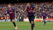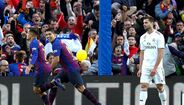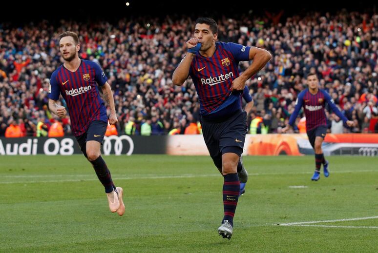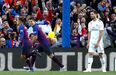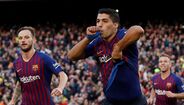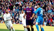 O Barcelona chegou ao intervalo a vencer o Real Madrid por 2-0, sendo o segundo tento dos catalães marcado por Suaréz na conversão de um penálti. O tento foi dedicado especialmentre ao filho mais novo que nasceu recentemente [Fotos: Reuters]