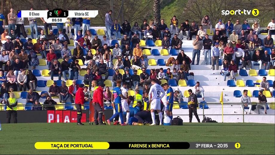 Susto no Elvas-V. Guimarães: Lucão perde os sentidos e é transportado para o hospital