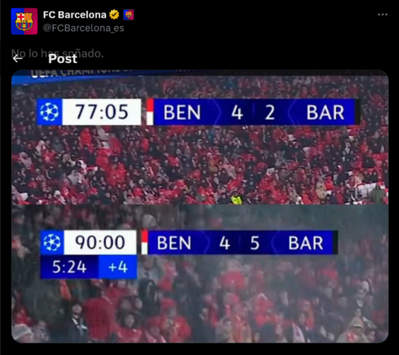 O jogo foi de muitas emoções e as redes sociais estavam ao rubro: o Benfica-Barcelona (4-5) juntou todos os ingredientes para se tornar num jogo épico de Liga dos Campeões e os 'memes' navegaram a mesma onda...