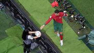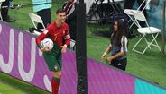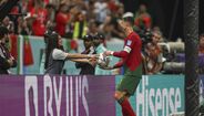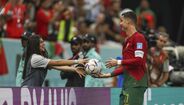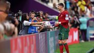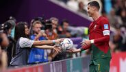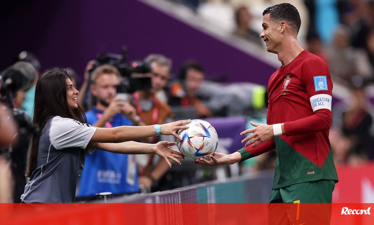 Cristiano Ronaldo protagonizou um momento curioso com uma das apanha-bolas do Estádio Lusail, arrancando-lhe mesmo um sorriso de orelha a orelha. (fotos: EPA e Getty Images)
