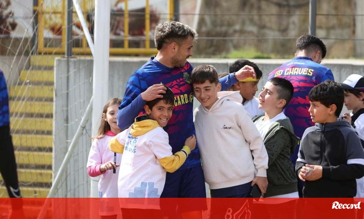 Uma centena de crianças assistiu ao treino do Chaves no Estádio Municipal