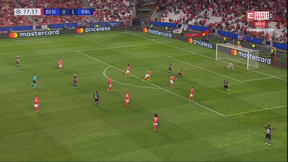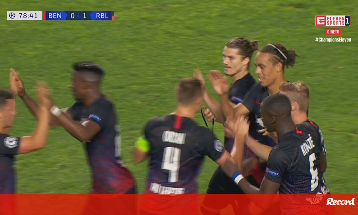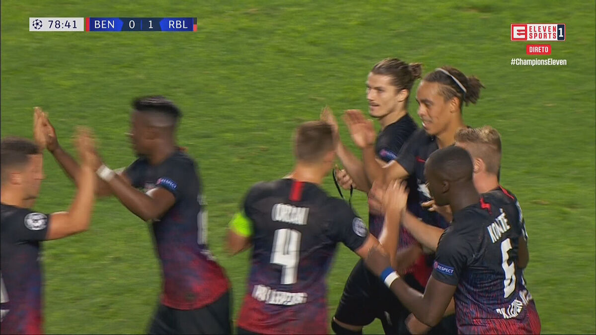 O RB Leipzig ampliou a vantagem diante do Benfica aos 78', na sequência de um lance que inicialmente até foi invalidado pelo árbitro auxiliar. O VAR analisou a jogada e deu indicação para que o golo fosse validado...