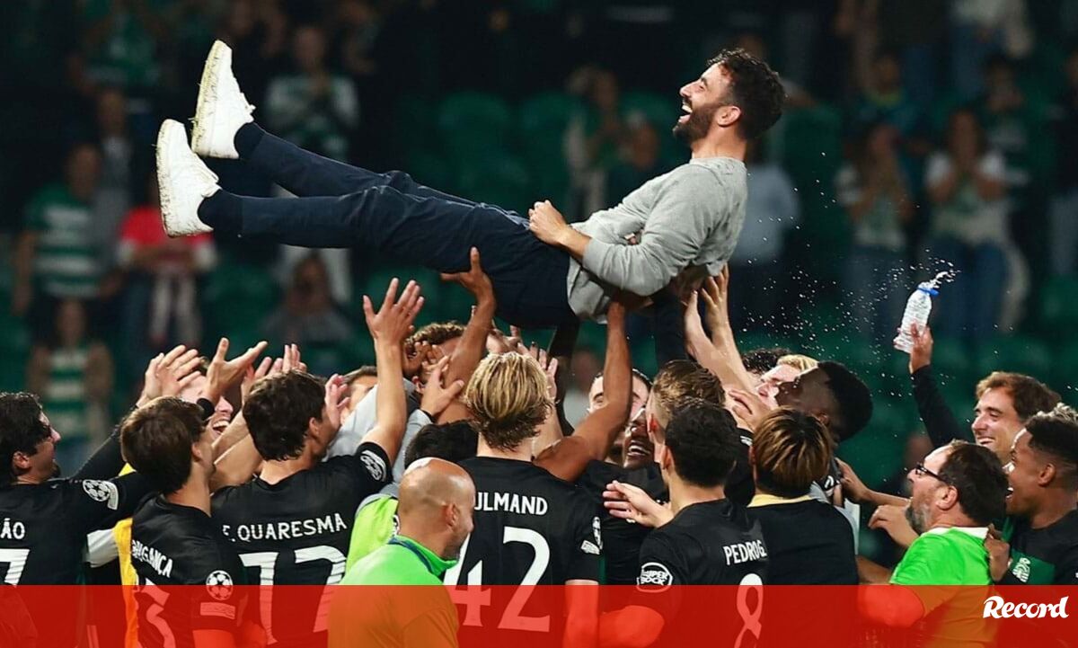 Era difícil imaginar uma despedida melhor. No último jogo em Alvalade ao serviço do Sporting, Rúben Amorim viu a sua equipa golear (4-1) o Manchester City - uma das melhores equipas da atualidade - e no final foi naturalmente muito felicitado, tanto por jogadores como pelo público. O técnico de 39 anos foi aplaudido pelas bancadas e ainda foi atirado ao ar pelo grupo de trabalho, isto depois de dar a volta olímpica. Veja as imagens deste emotivo adeus.