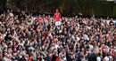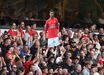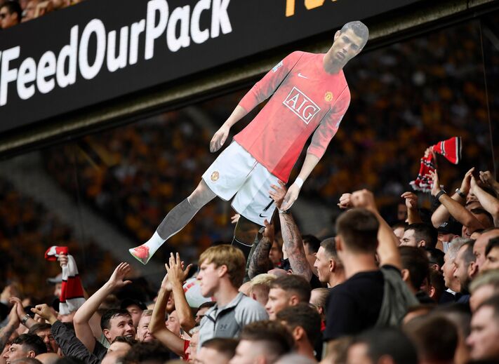 Adeptos dos red devils com cartazes do craque português