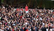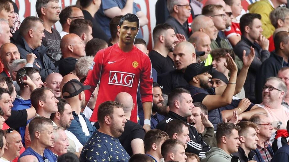 Os adeptos do Manchester United anseiam pela chegada de Cristiano Ronaldo à equipa. Por enquanto, o craque português vai marcando a presença nos jogos dos red devils apenas em cartazes. [Imagens: Reuters e Action Images]