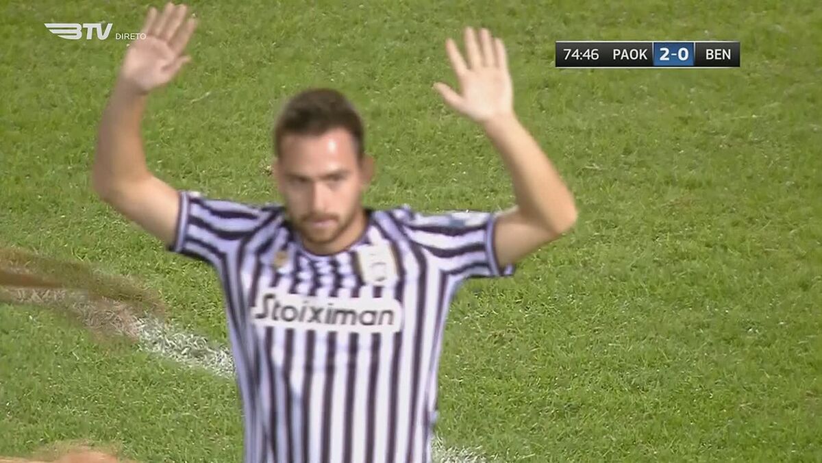 Contratado a custo zero depois de ter rescindido com o Benfica, Andrija Zivkovic estreou-se a marcar pelo PAOK diante das águias e na hora de celebrar pediu desculpa às águias.