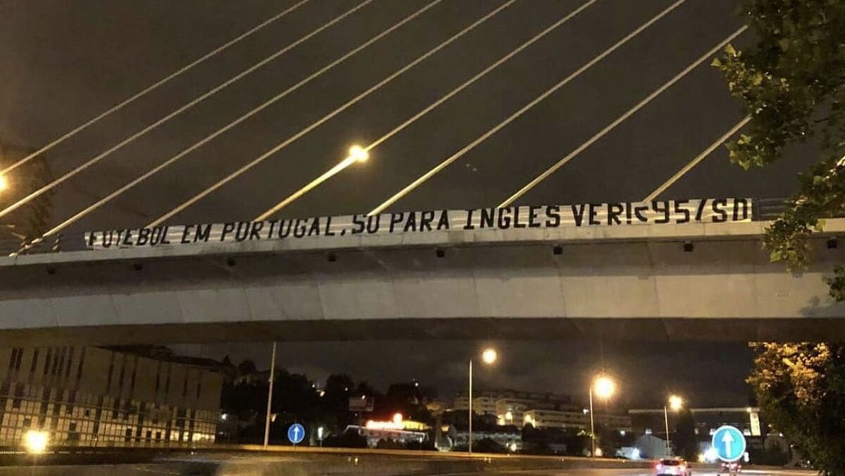 "Futebol em Portugal, só para inglês ver": esta é a mensagem que se pode ler numa tarja, da autoria dos Super Dragões e do Colectivo Ultras 95, colocada na noite passada num viaduto junto ao Estádio do Dragão. Recorde-se que a final da Liga dos Campeões, entre Chelsea e Man. City, se vai disputar no reduto do FC Porto a 29 de maio, com público nas bancadas, ao contrário do que irá suceder quer na última jornada da Liga NOS - como avançado ontem - quer na final da Taça de Portugal