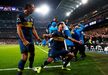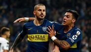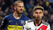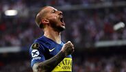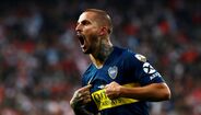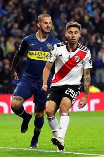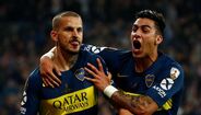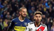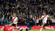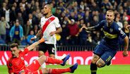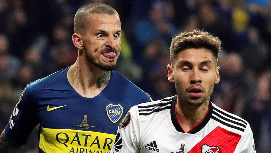 Darío Benedetto protagonizou uma das imagens mais marcantes do Superclássico entre River Plate e Boca Juniors, mas arriscamos dizer que o avançado argentino provavelmente se terá arrependido do gesto feito na direção de Gonzalo Montiel. É que no final a sua imagem acabou por ser usada como motivo de... gozo. (Fotos: Reuters e EPA)