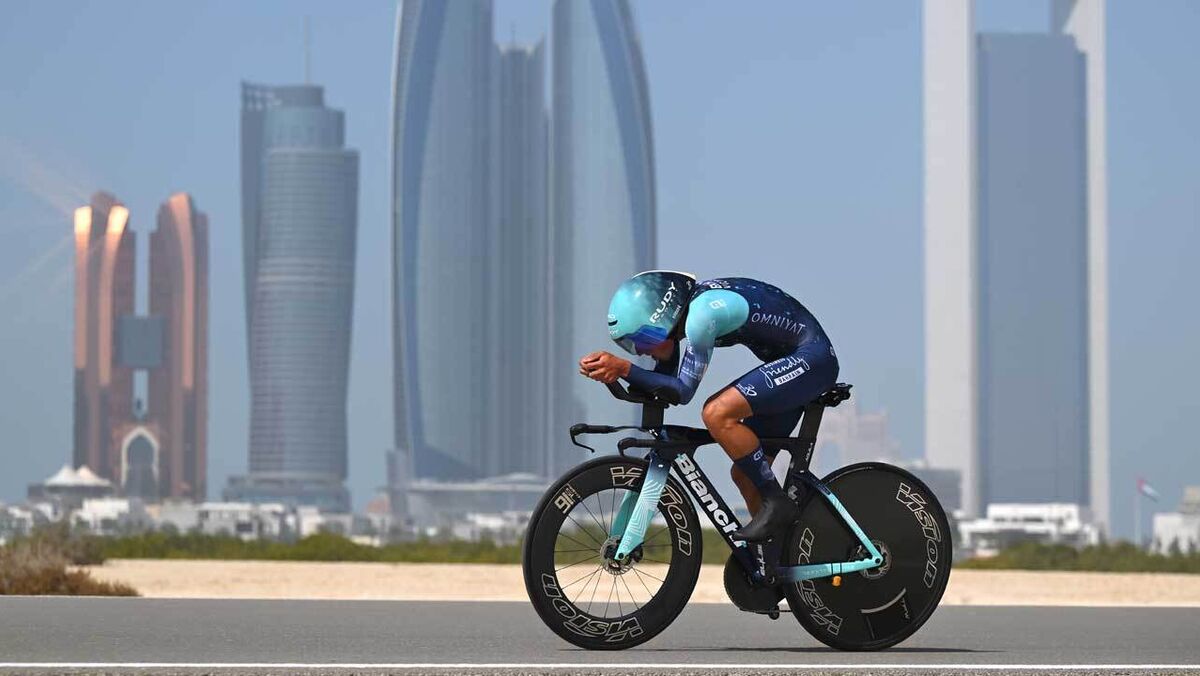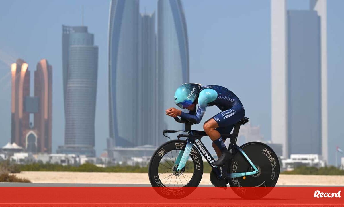 Ver corredores portugueses na alta roda do ciclismo internacional já não é novidade, mas perceber que nos longínquos Emirados Arábes Unidos decorre uma prova que atrai a presença das melhores equipas é que causa alguma sensação. Aqui, Afonso Eulálio acelera, durante o contrarelógio, em Hudayriat Island, cidade que, pelo menos nesta imagem, parece construída para ser um belo postal