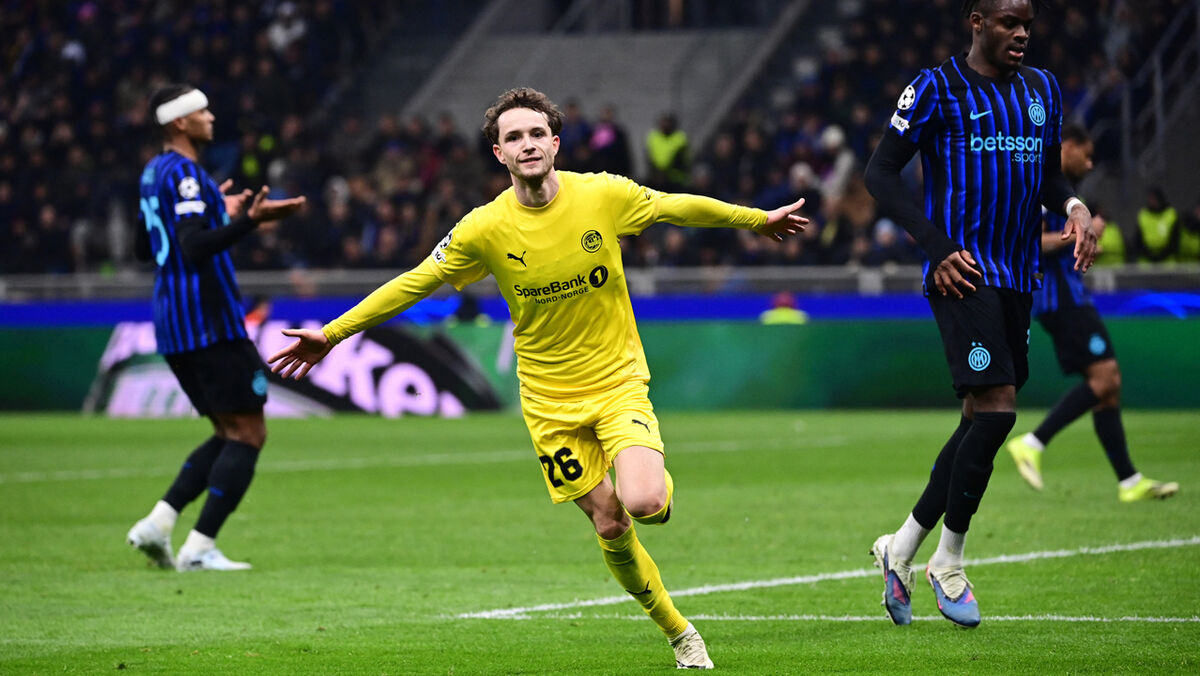 O Bodo/Glimt começou por cometer uma surpresa (venceu o poderoso Inter Milão na Noruega por 3-1) e confirmou a proeza na visita a um dos santuários do futebol mundial, o mítico estádio de S. Siro, onde voltou a ganhar (2-1). Na imagem, Hakon Evjen celebra a marcação do segundo golo da sua equipa e transporta com ele o ar sereno da naturalidade. Como se vencer no Meazza fosse tão fácil como saltar à corda.