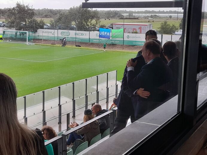 Presença ilustre em Alcochete esta manhã a assistir ao Sporting-Tottenham da Youth League: Aurélio Pereira, hoje conselheiro da formação do Sporting, que dá nome ao estádio onde se disputa o encontro. Frederico Varandas juntou-se ao 'Senhor Formação" na bancada, tal como Hugo Viana, e cumprimentou-o com um caloroso abraço. Também presentes estão Paulo Gomes, diretor da Academia, e Tomaz Morais, diretor do futebol de formação [Fotos Record]