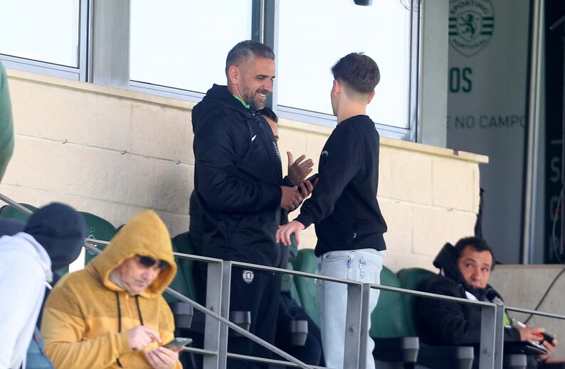 Rui Borges e alguns jogadores da equipa principal do Sporting, como Quenda, Alexandre Brito e Eduardo Felicíssimo, estão em Alcochete a assistir ao Sporting B-1.º Dezembro a contar para a 4.ª jornada de apuramento de campeão da Liga 3.