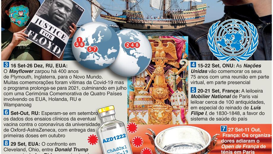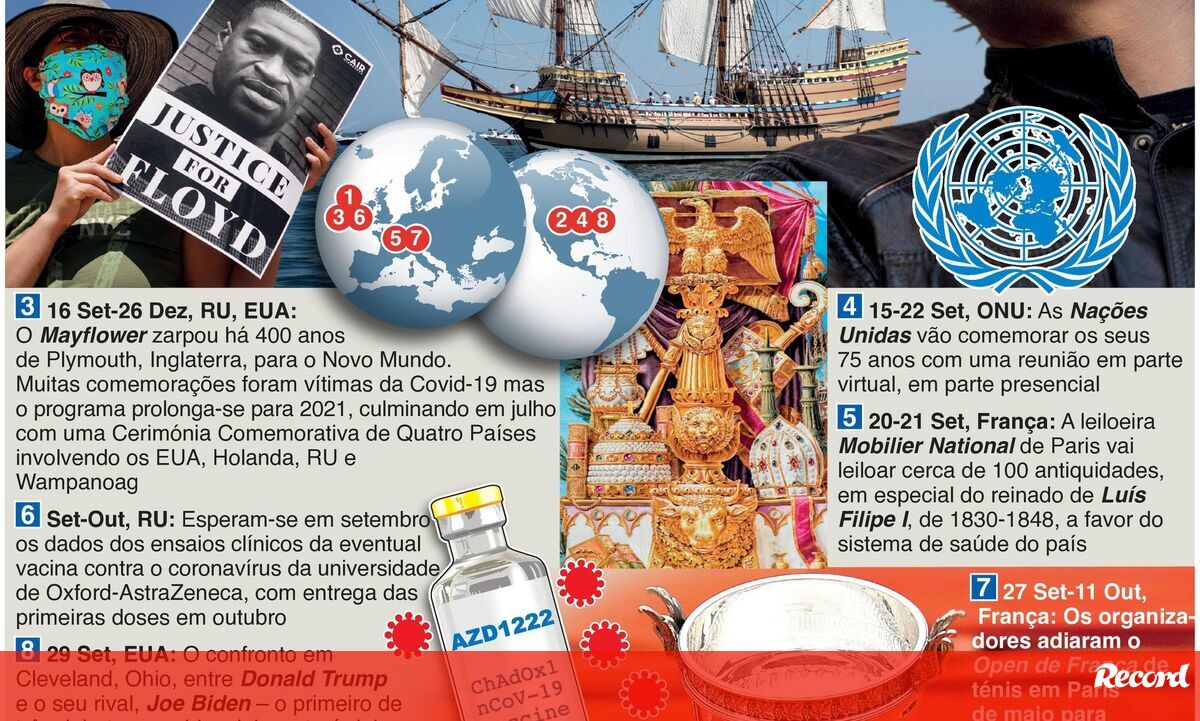 27 agosto 2020 - 16:37 Agenda mundial de setembro: dos resultados de um ensaio a uma vacina para a Covid-19 a Roland Garros ... × Funcionalidade exclusiva para assinantes Record Premium Assine para partilhar E usufrua de todas as vantagens de ser assinante Deixe o seu comentário Para poder guardar esta notícia deverá efectuar login. Caso não esteja registado no site do Record, efectue o seu registo gratuito. 27.08.2020 Agenda mundial de setembro: dos resultados de um ensaio a uma vacina para a Covid-19 a Roland Garros Deixe o seu comentário