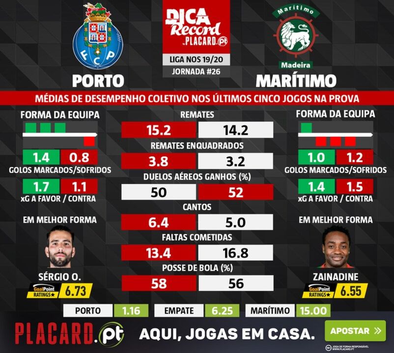 08 junho 2020 - 15:25 As melhores previsões para o FC Porto-Marítimo: o que dizem as médias de desempenho ... × Funcionalidade exclusiva para assinantes Record Premium Assine para partilhar E usufrua de todas as vantagens de ser assinante Deixe o seu comentário Para poder guardar esta notícia deverá efectuar login. Caso não esteja registado no site do Record, efectue o seu registo gratuito. 08.06.2020 As melhores previsões para o FC Porto-Marítimo: o que dizem as médias de desempenho Deixe o seu comentário