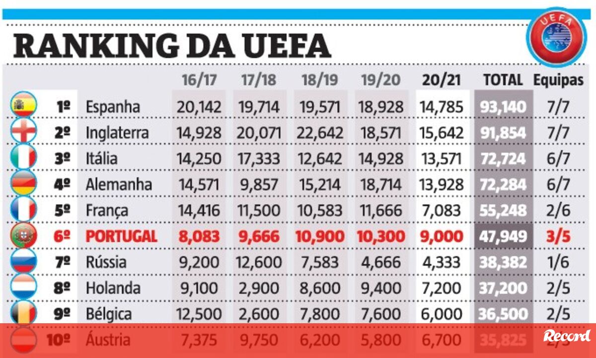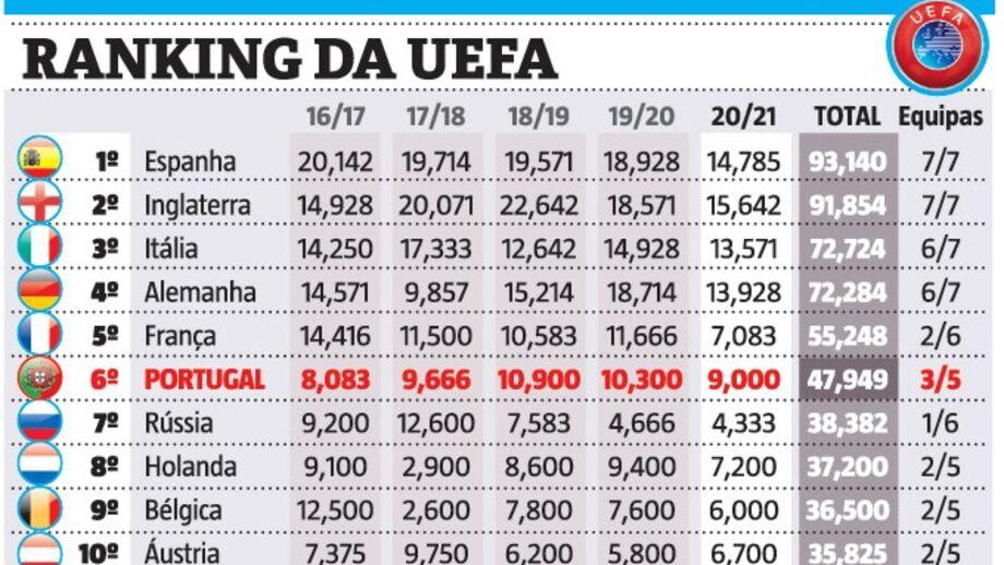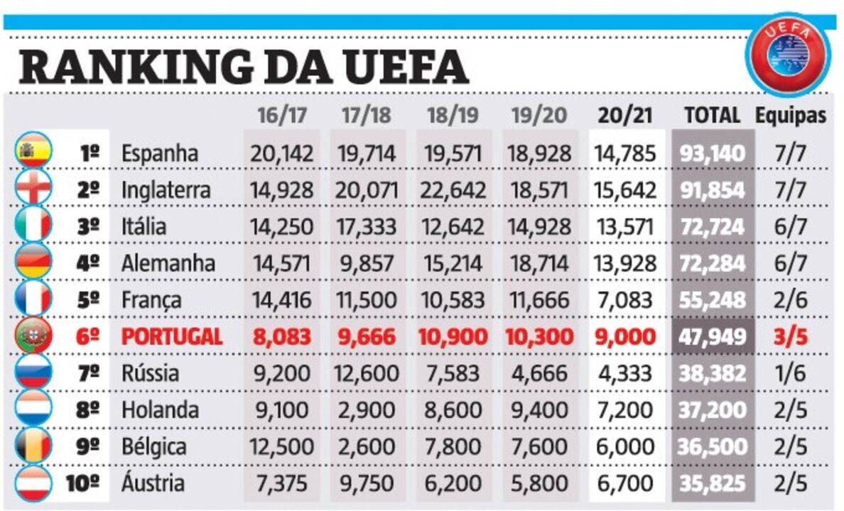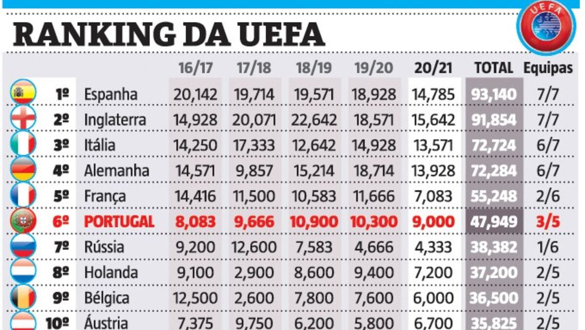 Assim está o ranking da UEFA
