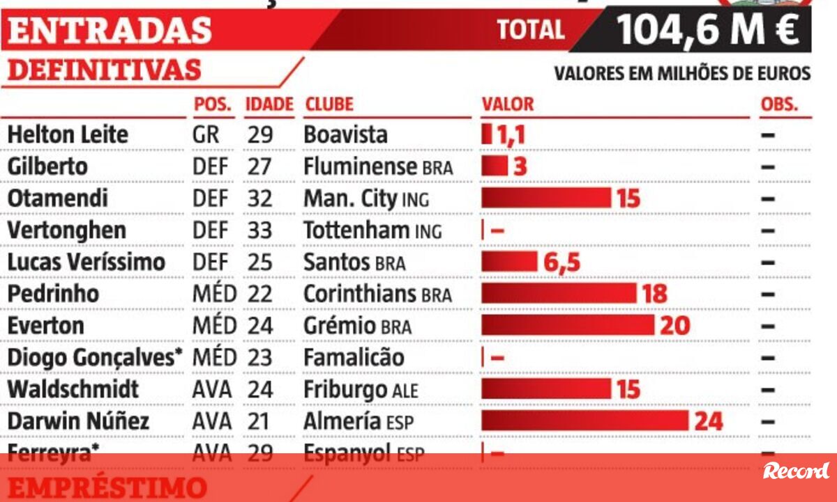 Benfica supera os 100 milhões em contratações esta época: veja todos os valores