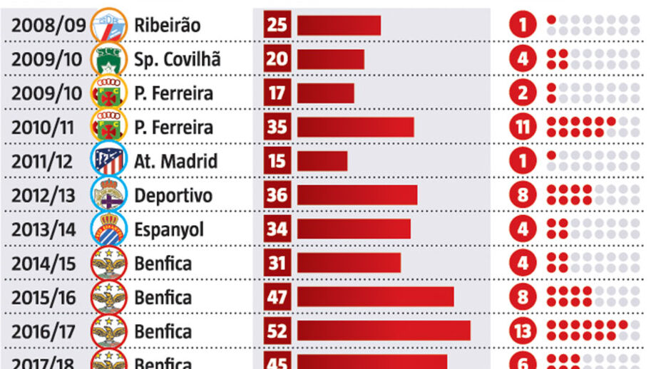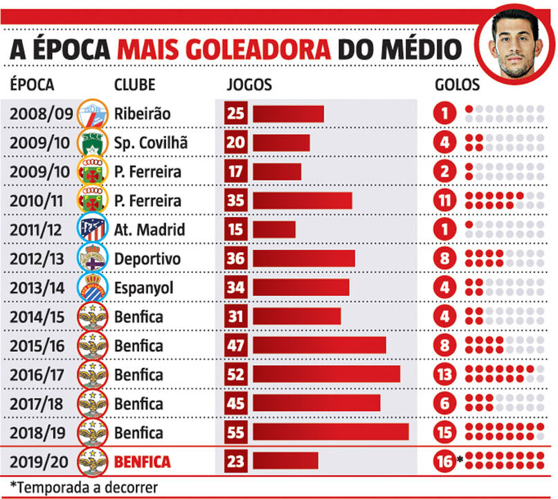 O penálti que Pizzi converteu ontem significou o terceiro golo do médio na Liga dos Campeões. Nesta edição e... em todo o histórico do jogador na prova, numa série que vai em seis épocas consecutivas. Curiosamente, o golo frente ao Zenit permitiu ao camisola 21 fixar o melhor registo de sempre da carreira: 16. E a época ainda vai a meio.