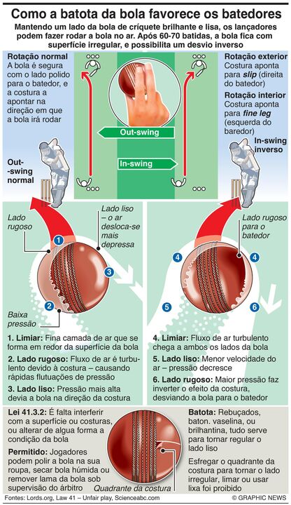 A seleção australiana de críquete esteve recentemente envolvida num escândalo de batota num jogo com a África do Sul, quando já perdiam por mais de 100 corridas. Cameron Bancroft, um dos jogadores australianos, foi apanhado pelas câmaras de TV a usar uma folha de lixa para tentar alterar o estado da bola e conseguir trajetórias mais favoráveis nos seus lançamentos. Quando confrontado pelo árbitro, escondeu o papel mas acabou por mais tarde admitir a infração. Mas, afinal, o que é que acontece com assim com a bola?