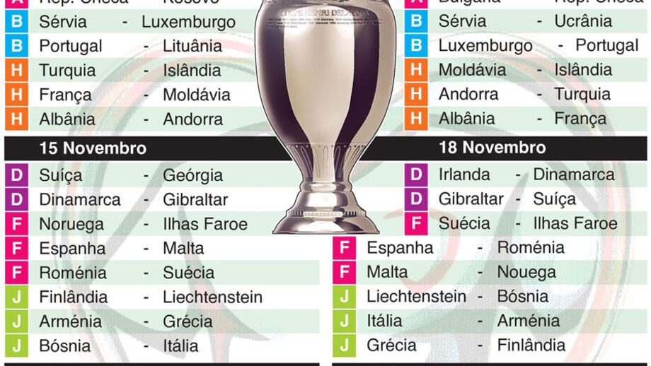 Euro'2020: Últimas 14 vagas diretas por atribuir