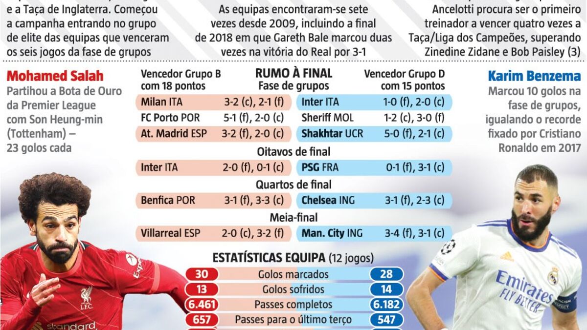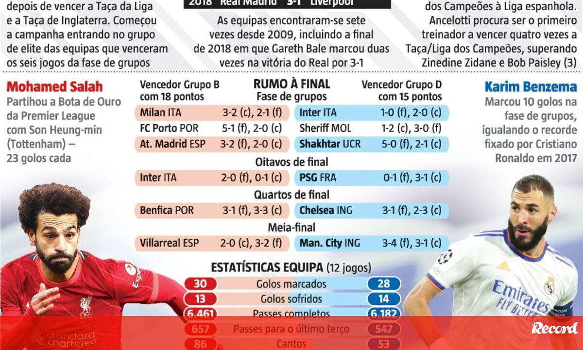 Final da Liga dos Campeões à lupa: as estrelas de Liverpool e Real Madrid e os números que contam