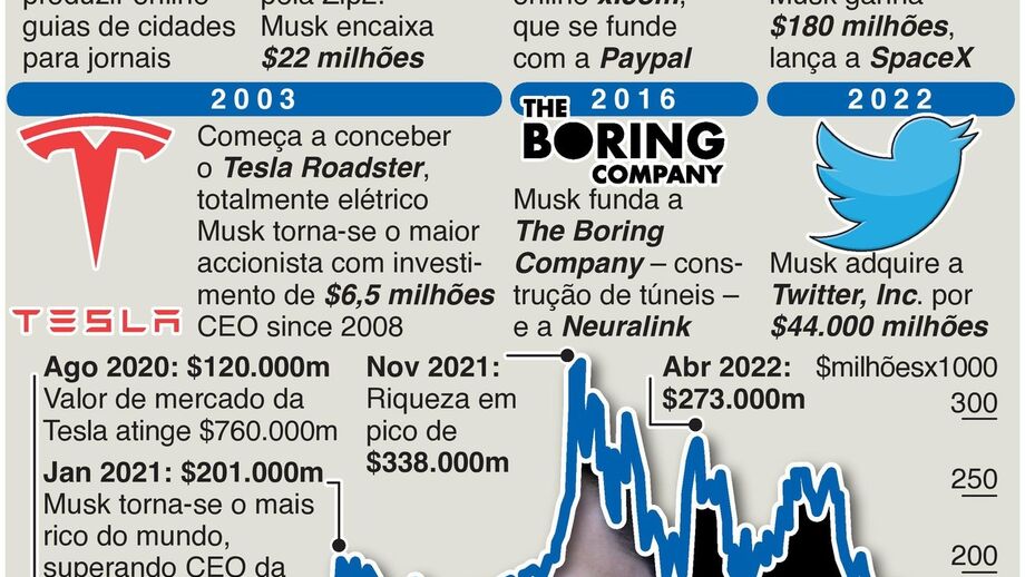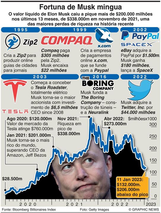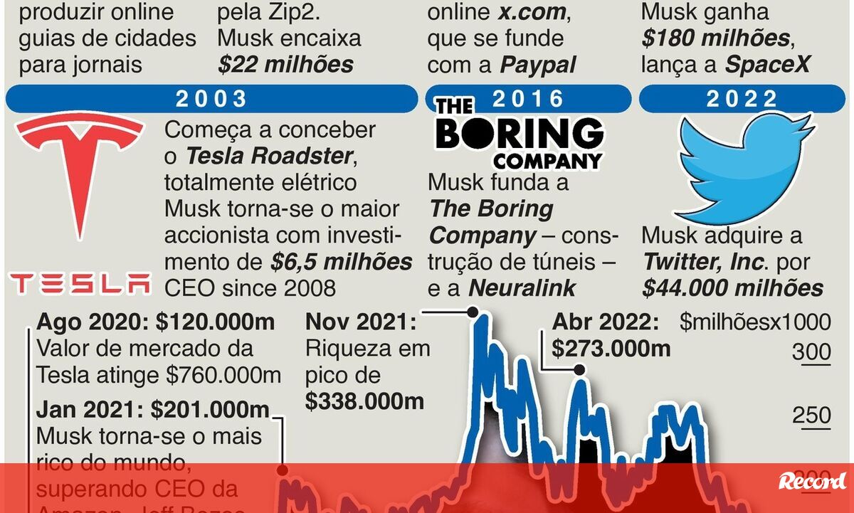 13 janeiro 2023 - 10:44 Fortuna de Elon Musk cai a pique: quebras impressionantes num ano ... × Funcionalidade exclusiva para assinantes Record Premium Assine para partilhar E usufrua de todas as vantagens de ser assinante Deixe o seu comentário Para poder guardar esta notícia deverá efectuar login. Caso não esteja registado no site do Record, efectue o seu registo gratuito. 13.01.2023 Fortuna de Elon Musk cai a pique: quebras impressionantes num ano Deixe o seu comentário