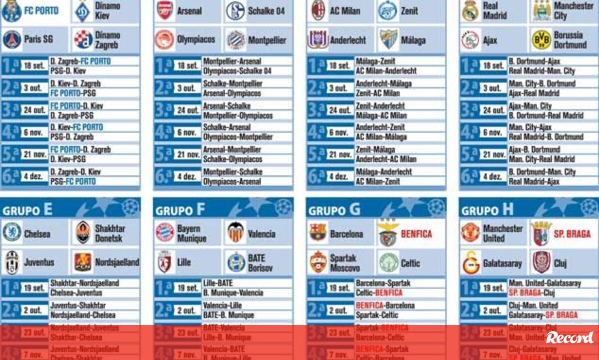 31 agosto 2012 - 00:12 Grupos Liga dos Campeões 2012/13 ... × Funcionalidade exclusiva para assinantes Record Premium Assine para partilhar E usufrua de todas as vantagens de ser assinante Deixe o seu comentário Para poder guardar esta notícia deverá efectuar login. Caso não esteja registado no site do Record, efectue o seu registo gratuito. 31.08.2012 Grupos Liga dos Campeões 2012/13 Deixe o seu comentário