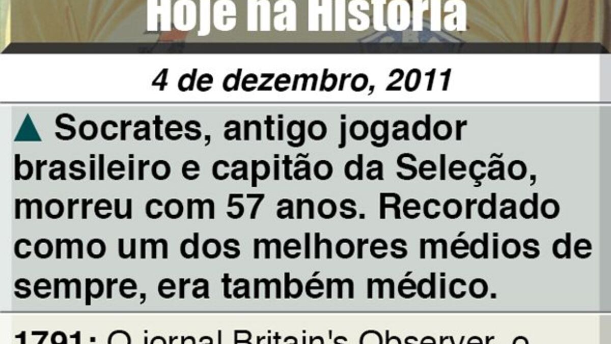 04 dezembro 2012 - 09:00 Hoje na História ... × Funcionalidade exclusiva para assinantes Record Premium Assine para partilhar E usufrua de todas as vantagens de ser assinante Deixe o seu comentário Para poder guardar esta notícia deverá efectuar login. Caso não esteja registado no site do Record, efectue o seu registo gratuito. 04.12.2012 Hoje na História Deixe o seu comentário