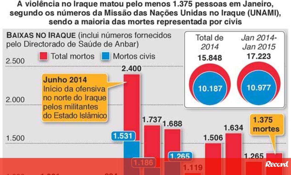 03 fevereiro 2015 - 22:33 Iraque registou quase 1.400 mortes em janeiro ... × Funcionalidade exclusiva para assinantes Record Premium Assine para partilhar E usufrua de todas as vantagens de ser assinante Deixe o seu comentário Para poder guardar esta notícia deverá efectuar login. Caso não esteja registado no site do Record, efectue o seu registo gratuito. 03.02.2015 Iraque registou quase 1.400 mortes em janeiro Deixe o seu comentário