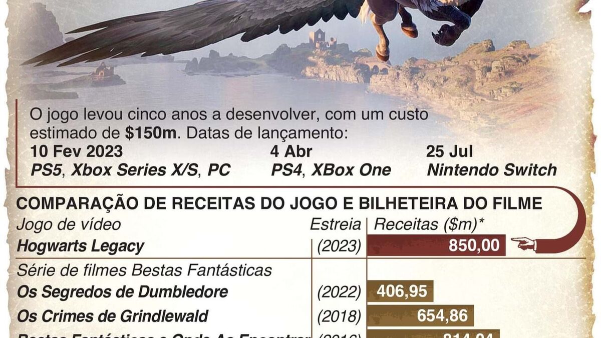 Nas primeiras duas semanas de venda, o jogo de vídeo Hogwarts Legacy vendeu mais de 12 milhões de exemplares – dando à Warner Brothers mais de 850 milhões de dólares (cerca de 800 milhões de euros)