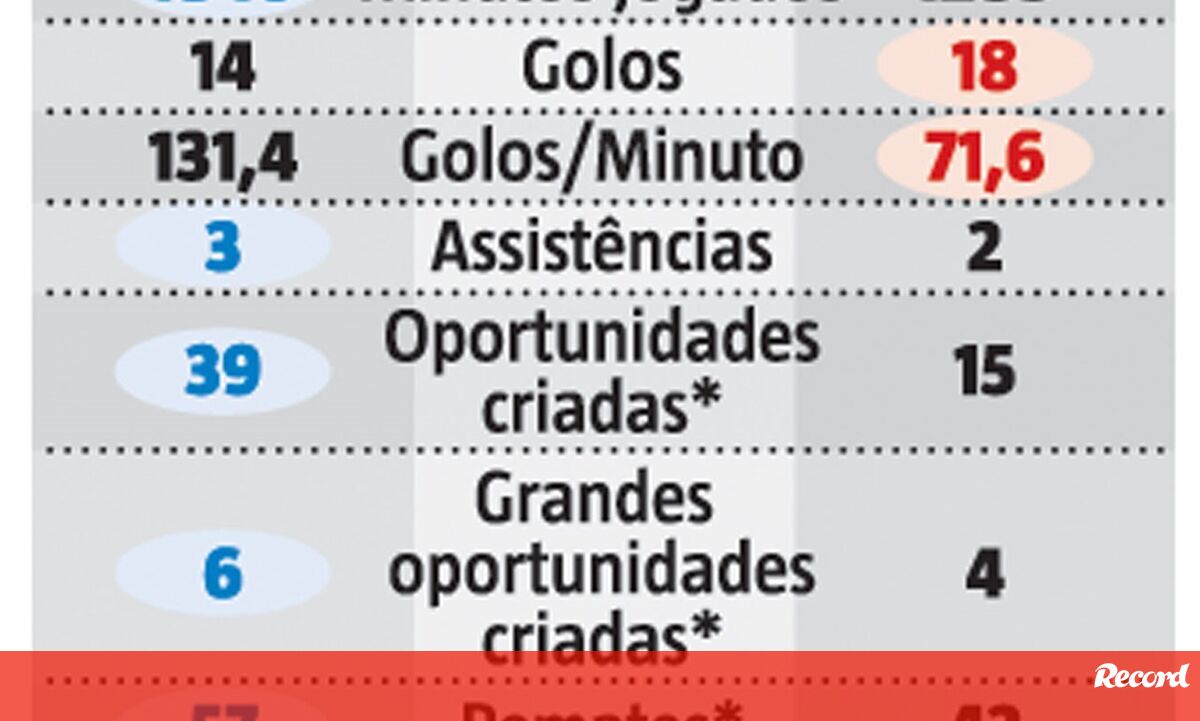 Domingos Paciência e Rui Águas foram convidados a analisar o desempenho de Luis Díaz e Darwin mas, quando questionados sobre qual dos dois era mais influente na sua equipa, recusaram dar uma resposta taxativa. Mesmo os números que ambos têm apresentado são elucidativos da importância que cada um representa. É certo que o benfiquista já apontou 18 golos, mais quatro do que o dianteiro dos dragões, mas este último, com mais 551 minutos em campo, tem sido mais determinante nas assistências para os golos, nas oportunidades que cria e nos dribles bem sucedidos.